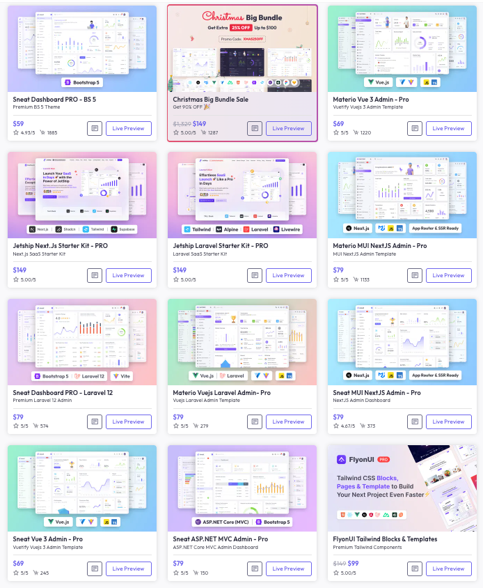 매번 새로운 프로젝트를 시작할 때마다 처음부터 UI를 만드는 건 정말 비효율적이거든요. 저희는 Laravel, Vue, NextJS, NuxtJS, .NET Core MVC 등 다양한 기술 스택을 지원하는 템플릿을 제공해서, 개발자들이 바로 핵심 기능 개발에 집중할 수 있도록 돕고 있습니다.