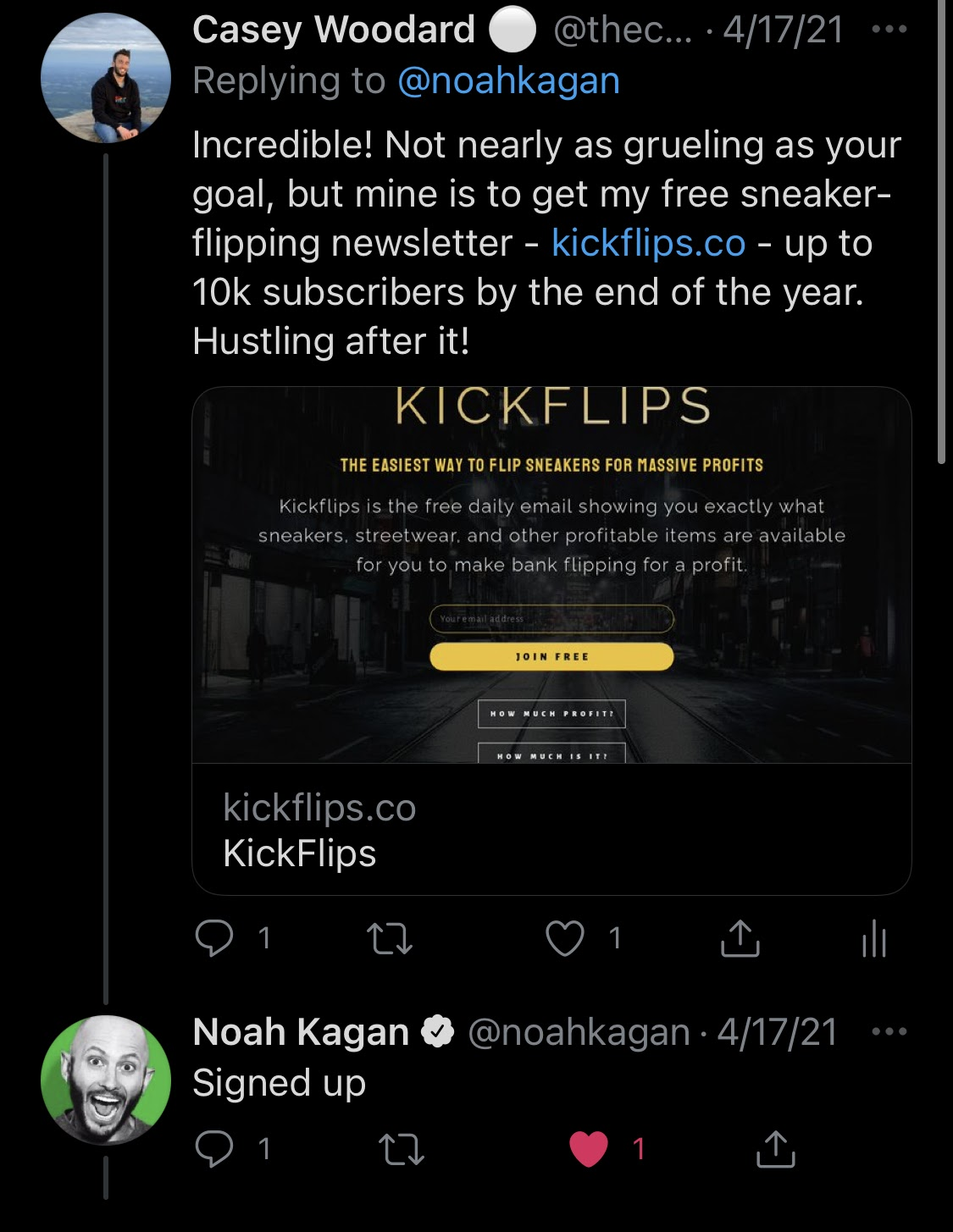 안녕하세요, 저는 Casey Woodard입니다. KickFlips라는 스니커즈와 스트리트웨어 리셀링 정보를 제공하는 이메일 뉴스레터와 디스코드 커뮤니티를 운영하고 있어요.