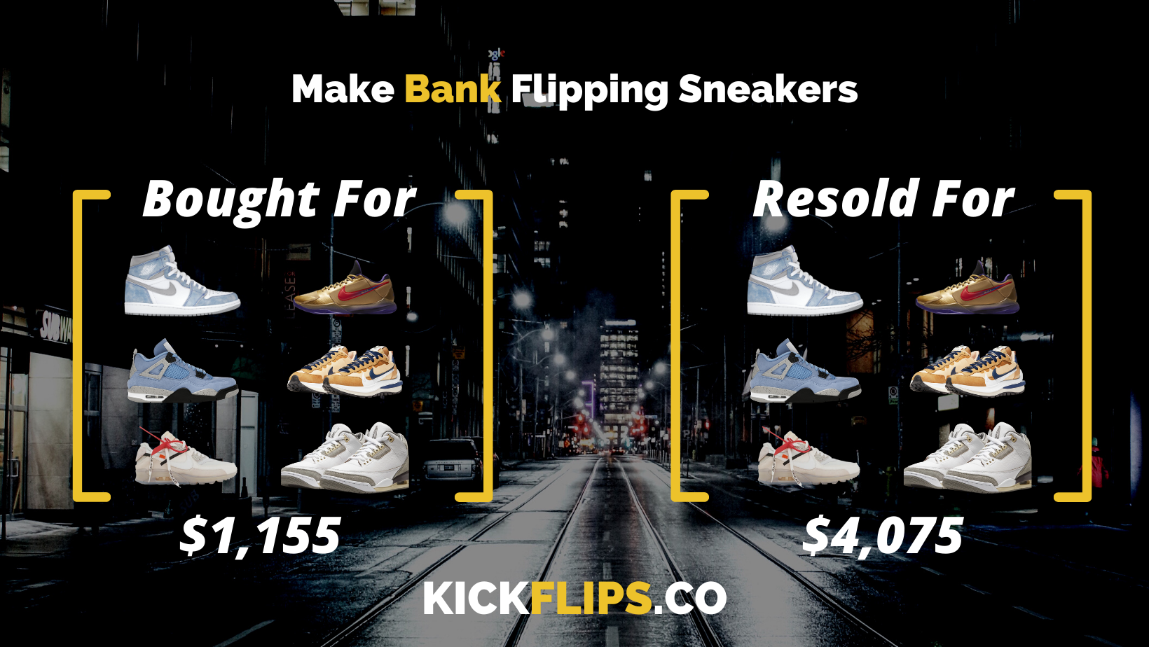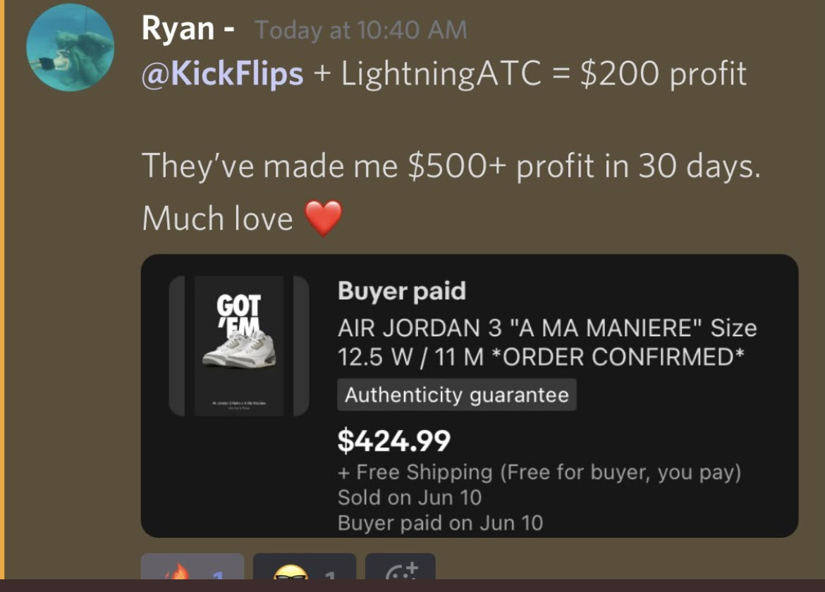 수년에 걸쳐 수많은 친구들이 스니커즈, 게임 콘솔, GPU 등으로 돈 버는 방법을 가르쳐 달라고 요청했어요. 이전 사업 경험을 통해 많은 사람들이 어떤 방법에 대해 물어본다면, 그 지식에 대한 시장이 있다는 걸 알고 있었거든요. 너무 많은 사람들이 가르쳐 달라고 해서, 스니커즈 플리핑을 배우고 싶어하는 큰 미개척 시장이 있다는 걸 명확히 알 수 있었습니다.
