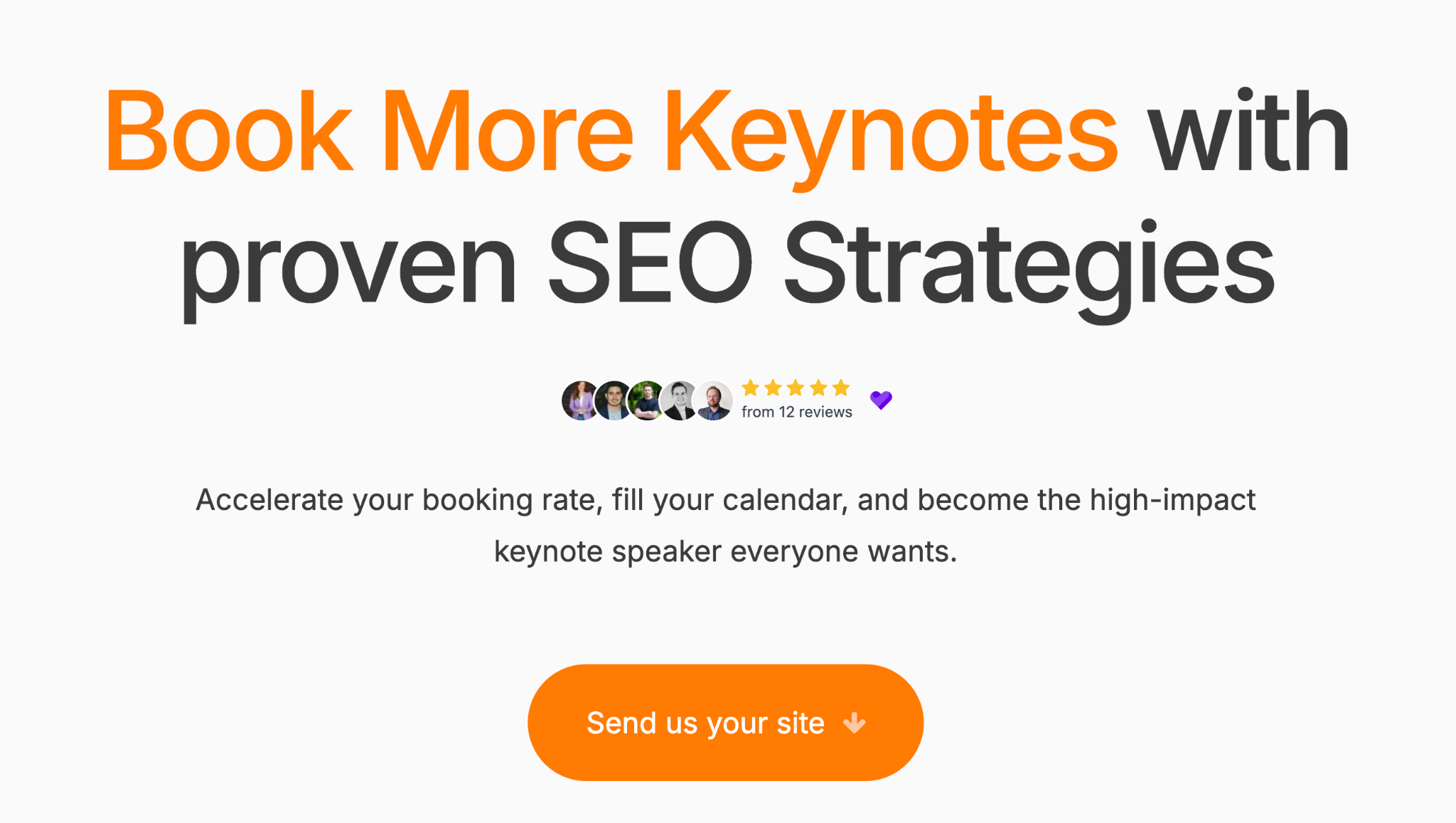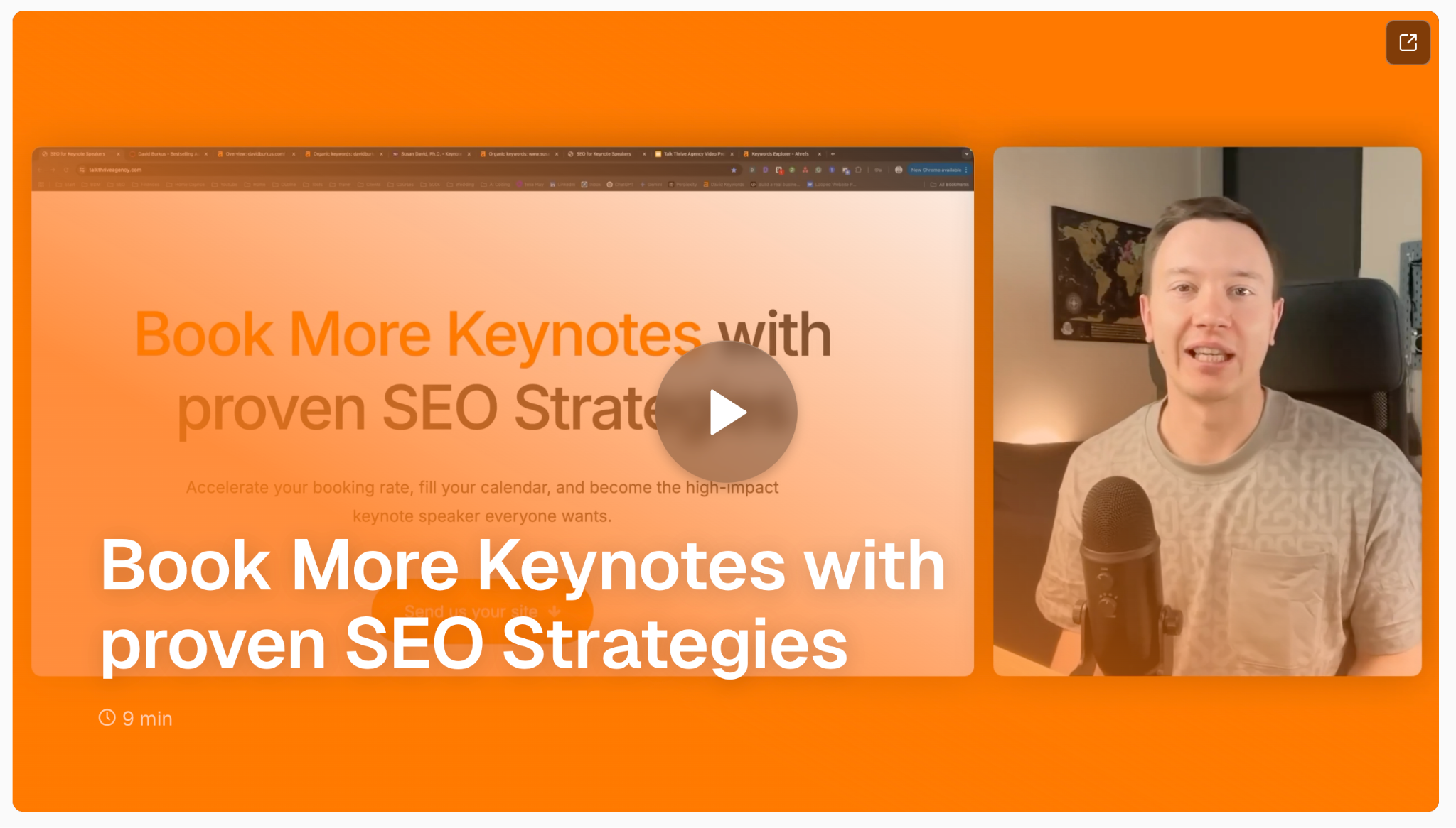 제 비즈니스의 가장 큰 특징은 '의도적으로 작게' 유지한다는 점이에요. 저는 기조연설자(keynote speaker)들의 웹사이트를 유기적 트래픽 머신으로 만들어 더 많은 강연 기회를 창출하는 일을 전문으로 하고 있습니다. 일반적인 에이전시처럼 수십 명의 클라이언트를 받지 않고, 소수의 고객에게만 집중하면서 장기적인 성과에 집착하죠.