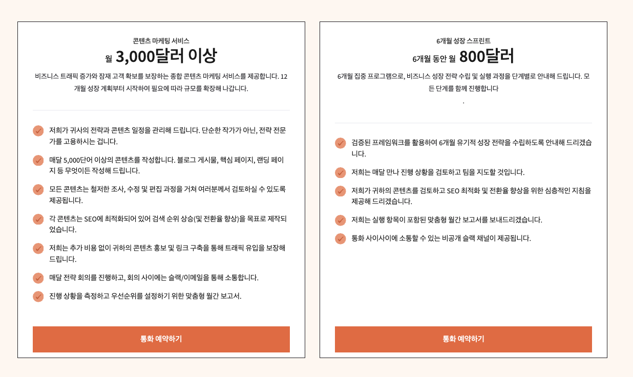 이 문제를 명확하게 정의하고 나니, 제 비즈니스를 분명하게 포지셔닝할 수 있었어요. Centori는 **‘전략적으로 접근하는 정직한 SEO’**였습니다.